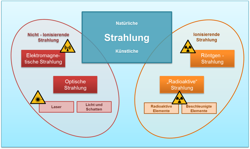 Der Mensch ist verschiedenen Formen von Strahlung ausgesetzt. Man unterscheidet sowohl physikalisch als auch rechtlich den Bereich der ionisierenden Strahlung von dem der nicht-ionisierenden Strahlung.